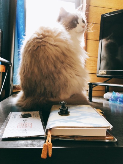手帳の撮影会をしてたら、偵察にやってきたアム。