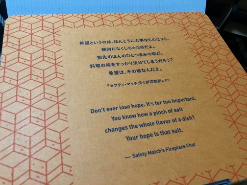 相変わらず届いた箱を開けた時にまず目に入る言葉が深い。