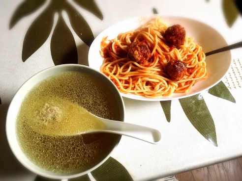 本来ならスープは水菜とか浮かせるんだけど、昨日はスパゲッティ作るついでに作ったので省略しました。まぁ見た目にこだわるなら…という感じでしょうかね。