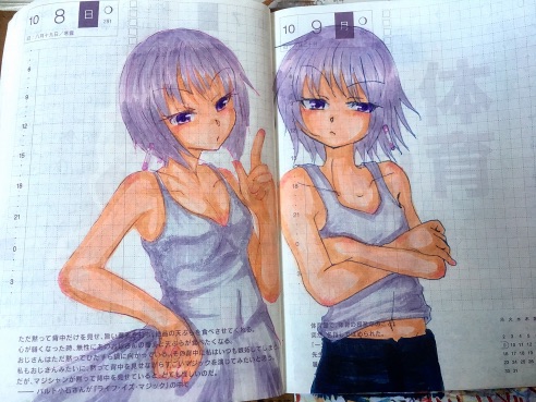 この2人の髪の毛色は透き通った紫をイメージしてるんですが、中々表現が難しいもんですね…カラーで塗る度に理想を探している様な気がします(´ω`)