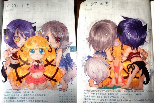 そういう訳で嬉しいお休みなんですけども…結局起床時は暑くて心行くまま安眠出来なかったり、休みは休みで絵を描いてたりしてるので休んでんだか休んでないんだか。・*・:≡( ε:)