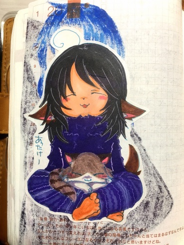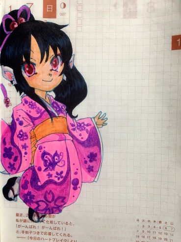 描いたらそのページを取り外して、絵の周りを切り取って糊で手帳のその日のページに貼って…を考えてみれば10ヶ月位続けてたのかな…まぁ何枚かは失敗したページもありましたけど。