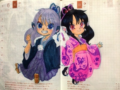 6日と7日の見開きはこんな感じ。彼らの顔も描きたかったのよね(´`)