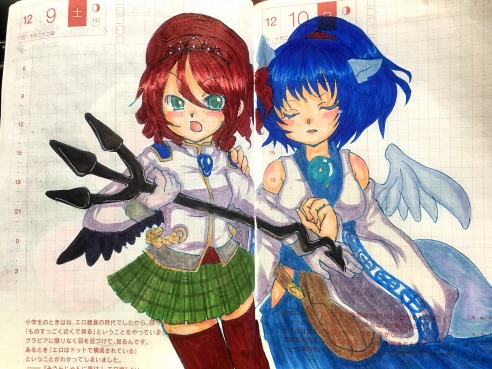 槍の持ち手部分が上過ぎかなーと思いつつ、日記を描く部分が小さくなるのもアレなんでこんな感じになりました。多分両手で持てば違和感はなかったんじゃなかろうか。多分。