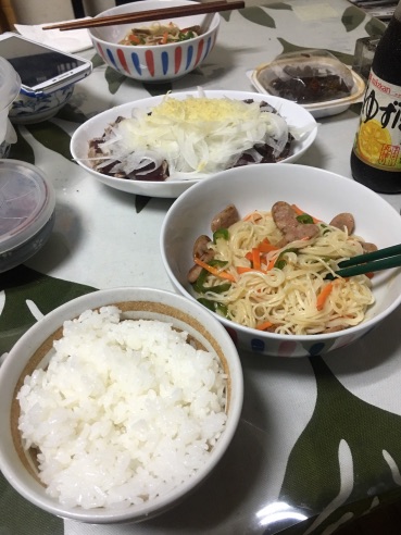 ただそうめんはちょい茹ですぎたかなぁ…普通に食べる分には丁度いい柔らかさだけど、炒めるとなると少し固めで茹で終えても良かったかもね。