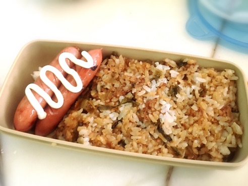 簡易弁当!高菜チャーハンとソーセージを添えて( ˘ω˘ )
