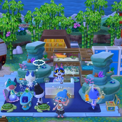 最初は空が海面ってだけでもの寂しい感じだったんですけど、釣り大会で海底シリーズが手に入る様になってからどんどん私好みのレイアウトが出来てきまして。