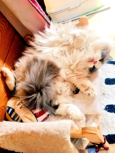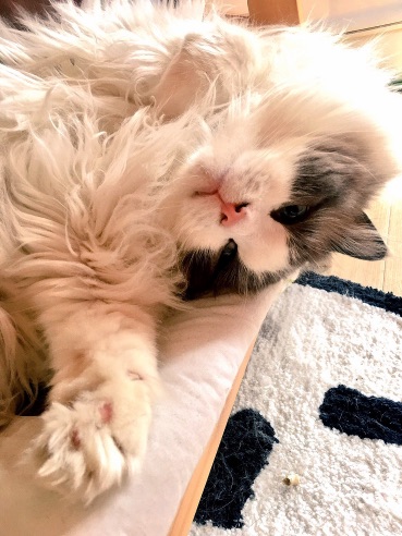 ついさっきまで天使の様な寝相だったのに、ふと目をやるとひっくり返ってぐでーんと何とも大胆なポーズをしてて笑いました。リラックスしてるなら何よりだけどさ…(´ω`)