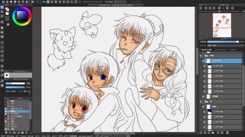 塗りに関しては↑の通りまだ肌と瞳(途中)なんでなんとも…ですが、でも水彩ツールとかはfireよりは一層筆感イメージが近くて使い心地が良いですね。