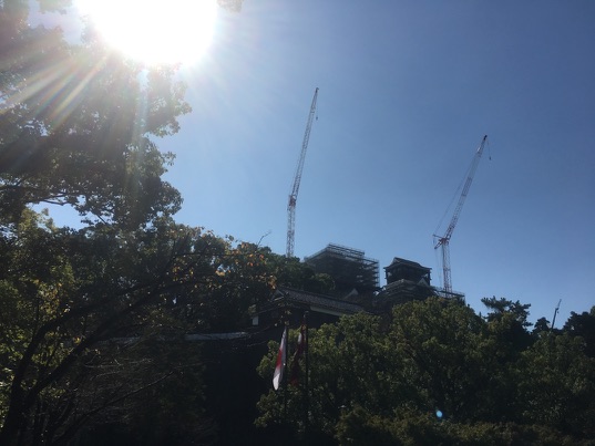 ふと、見た場所が遠かったからかもしれないんですが熊本城が意外とそんなに大きく感じられなかったのが意外でした。クレーンの方が高かったから対照的にそう感じただけかな?