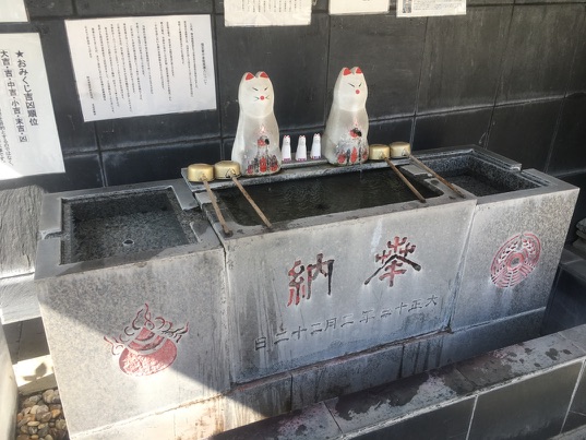 こちらは阿蘇城稲荷神社の手水舎。水が流れるお稲荷様が可愛かったので撮影しました(-人-*)