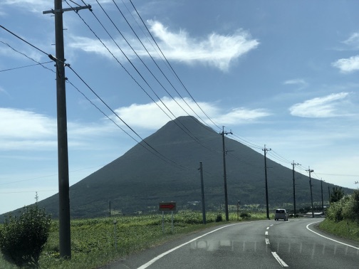 今回の写真は旅行中、レンタカーの助手席から撮った開聞岳。