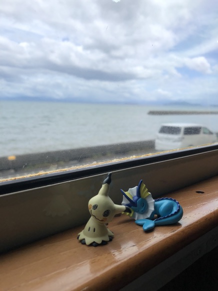 フィギュアサイズのミミッキュとシャワーズも連れて行ってました。