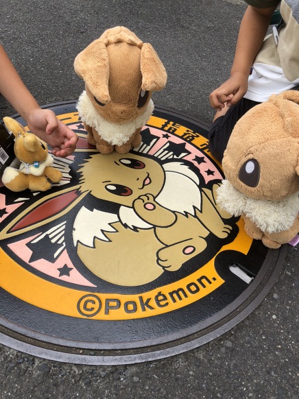 まぁ、宿のチェックインや花火大会まで時間はあるし…と到着早々イーブイマンホール巡りが開催されました。・*・:≡( ε:)<元気だなオイ