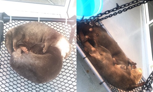 カワウソ達は仲良くお休み中( ˘ω˘ ) (ちなみに左はメス同士、右はオス同士)