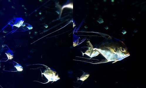 それを見てるのも癒されるもので、ふと気付くと写真に写ってる1匹だけ眺めてるお客さんに向かってひたすら遠くからスィ〜っとほぼ同じ経路をくるくる泳いでました。ちょっと面白かった。