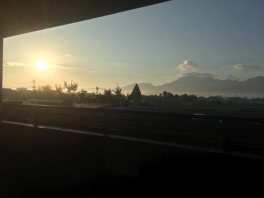 ご飯が7〜9時だから早起きしなきゃって事で頑張って起きてみたけど、これは早起きする価値がありますね。熊本はホント山が綺麗…空と雲と全てのコントラストが絶妙(*´ω`*)