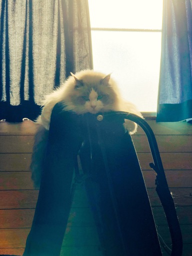 何でか折り畳みベッドの折り畳んだ上がいたく気に入ってしまったようで、移動中やらずっと上に登って寛いでました。開くと挟んじゃうから開きも出来ないっていう(笑