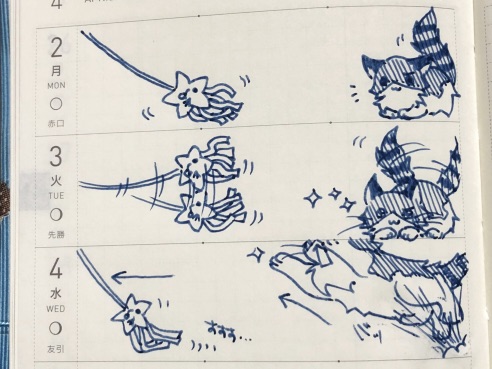 うーん、フリクションとはいえ下書きなしの動き有りな絵って難しいな。