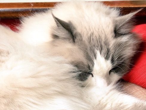 先日の膝で眠るアムのアップ写真。あの日は至福のひと時だった…