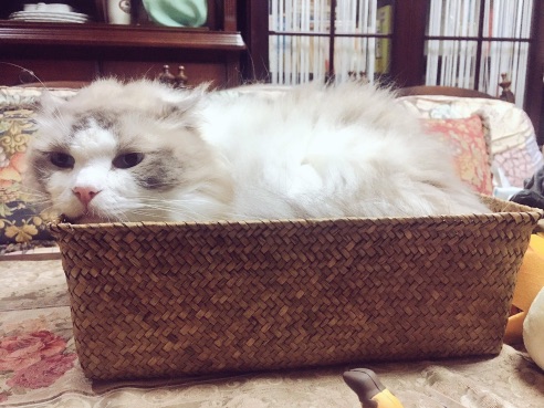 なんというか、入るのは予測してたんですが…そんなに大きいカゴでもなかったのでまずアムがすっぽり入れた事にビックリしました(笑