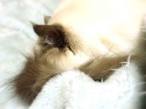 尻尾でお顔隠し。毛で鼻ムズムズしないのかなぁって毎度見てて思う。
