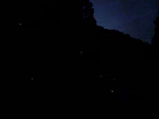 その後は両端から段々と中央へ移動するかのようにホタルがふわふわ飛び始め、たま〜に観光客の座る場所まで飛んでくるホタルもいたりして(小さい子が捕まえてた)、何とも幻想的でした。