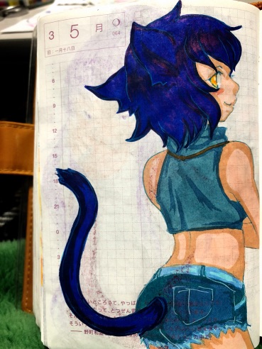 昨年8月位にミニキャラで描いたんですが、前回も今回も後ろ姿ポーズ。