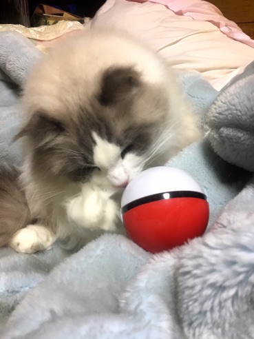 モンスターボールに戯れる猫。