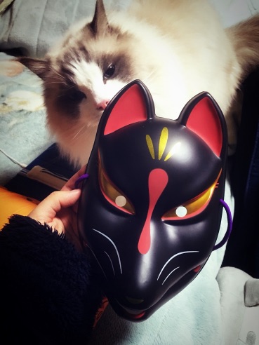 もう一つ白いポピュラーな面も買ったんですが、帰って早速並べて撮影しようと取り出したら↑コレです。アムがめっちゃ嗅いできてゆっくり撮影も出来やしない…まぁ可愛いけど(´`)
