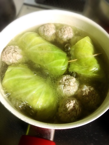 あんまりキャベツの葉っぱがなかったので肉団子も添えて。