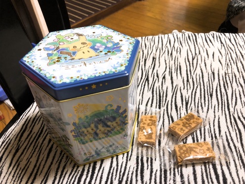 やっと手に入れたお菓子缶!よく見るとウエハース?にも印刷が。