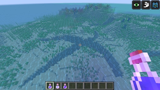 先日の息抜きマイクラより。 海底でピッケルに見える亀裂を見つけました。