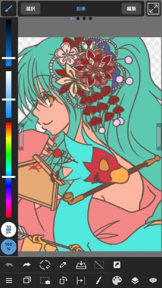 タップしながらスライドして筆の太さを変えられたり、アイコンからレイヤー一覧を呼び出して普通にレイヤーをいっぱい作れるし、操作になれればおそらくPCに遜色ないぐらいの扱い方は出来そうな予感。普通にここまで使いやすく作られてるのはすごい(゚Д゚≡゚Д゚)しかも無料!