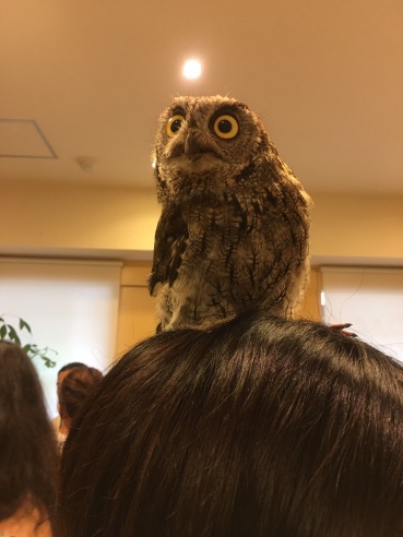 人生初のフクロウカフェ、朝一で友人・翁と満喫してきました✧*。٩(ˊᗜˋ*)و✧*。!