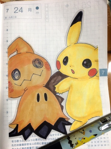 先日買ったフリクションの試し描きに、ミミッキュ&ピカチュウ。