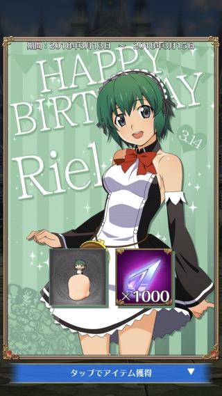同時に丁度限定ガチャもタイムセールでやってますが、石がまだ貯まってないのでやってません…まぁ、ユウと違ってリエルはそこそこカード手に入ってるから良いんだけどね。