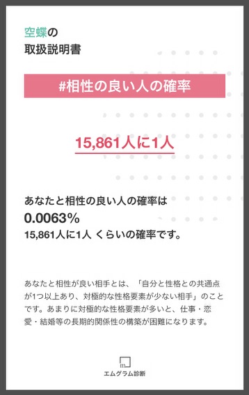 そして、そんな私と相性が合う確率は