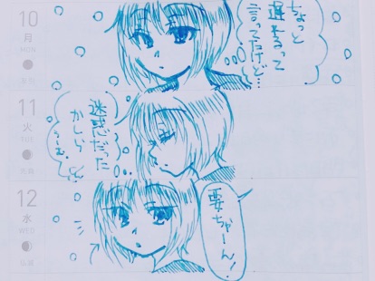 ここ1週間近く上の人の何気無い発言でモヤモヤして、しまいにゃ落ち込んでいたんですが、相談しようか悩んでる間にそれ以上に厄介な案件が舞い込みまして、なんかもう自分の事どうでも良くなってきました。・*・:≡( ε:)(笑