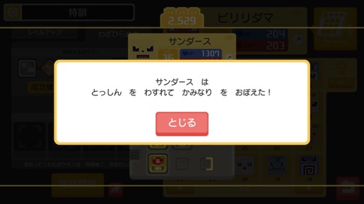 そして問題の技特訓…ああ、この子は素直にでんき技覚えてくれた。゚(゚´ω`゚)゚。(笑