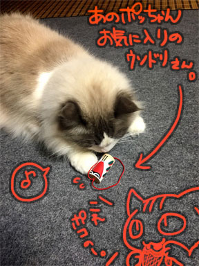 以前くるねこでくるさんがポッちゃん(収集好き)に鷽鳥さんあげてたなぁと思って、「アムも興味示すかな?」とお土産に持ち帰ってみたら…すごい喰い付きようで(笑)