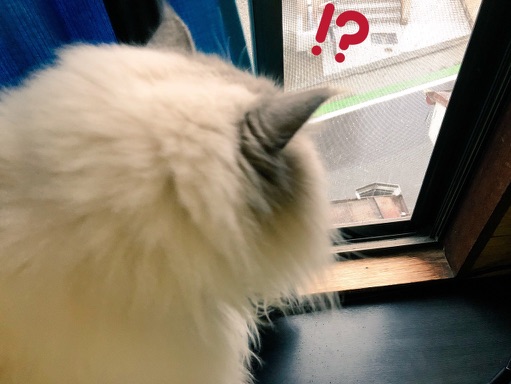 小屋に入って丸まってたアムも何事かと出てきて窓の外を覗きにきた様子が冒頭という訳。
