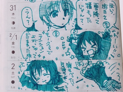 2月1日のマスだと思って描いてた所が1月31日でがっかり_| ̄|○