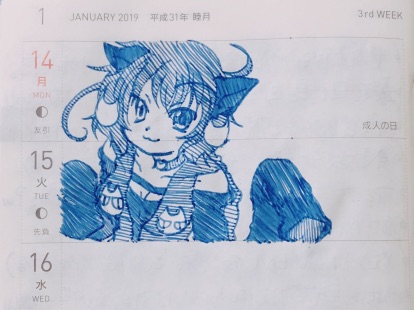 本当は”前へならえ”の先頭っぽく腰に手を当てたかったけど、22日で描いた肩の位置がちょい低かったですね…まぁ1日で描くなら修正するんだけど、もう前の日に描いてしまってるから大幅に修正するのもなぁってな感じでそのまま進行中。