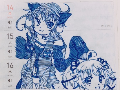 マゼンタはもうちょい胸でかくても良いんですが、如何せん下書き無しのほぼ1発描きなので気付いたらちょっと控えめになってました。いやどうでも良いんだけども!(