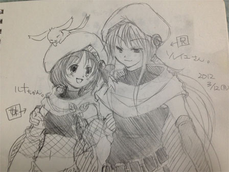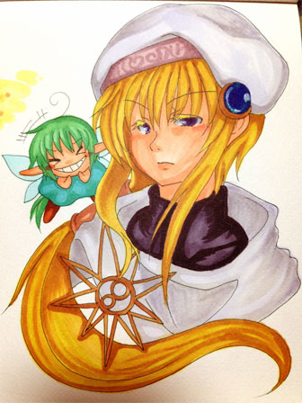 昨日描いたルナちゃんの兄、ソレイユさんとその使い魔らしき妖精さん。