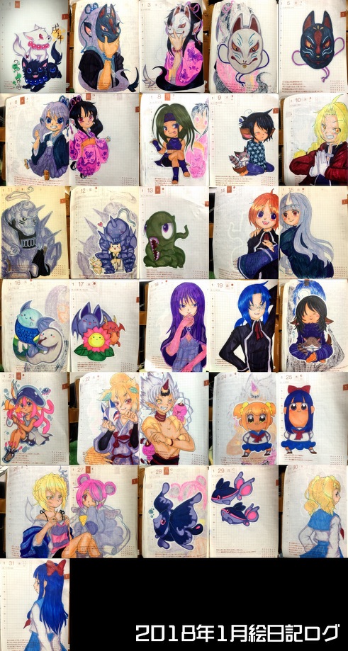 ハガレン、マジアカ、ポップン、ポプテピ…我ながらカオスな絵日記(笑