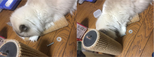 いやでもやっぱりダンボールじゃなくても”こう言う素材は爪を研ぐもの”って解ってるんですね。