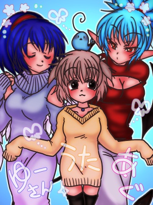 ゆーは元の和服も肩出しなんでそのイメージ+大人っぽく落ち着いたスタイル、うたは脚見せて腕はだぼだぼ袖で可愛さアピール(?)、アグは胸あきニットとパンツスタイルでお色気セクシー路線。