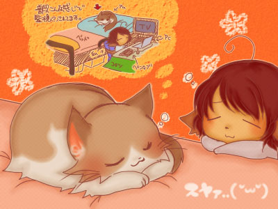 でも、そうやって寝てるアムを見てると癒されるんで休憩合間に眺めてるとそのままベッドに凭れ掛かって寝るか、コタツで寝るか…という立場逆転の寝床になってます。